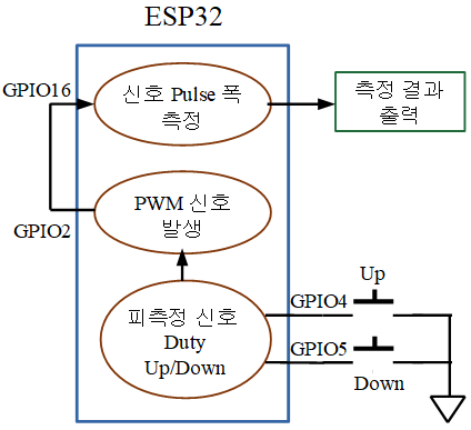 - 피 측정 Pulse 신호(GPIO2)와 측정 신호 입력(GPIO16) Pin을 연결 한다.