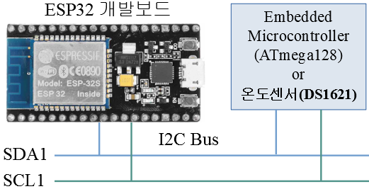 디지털 출력 온도 센서(DS1621)를 사용하는 시스템 구성과 프로그램 예는 "ESP32 I2C(Inter-Integrated Circuit) 통신"에서 설명하였으니 참고하기 바람.